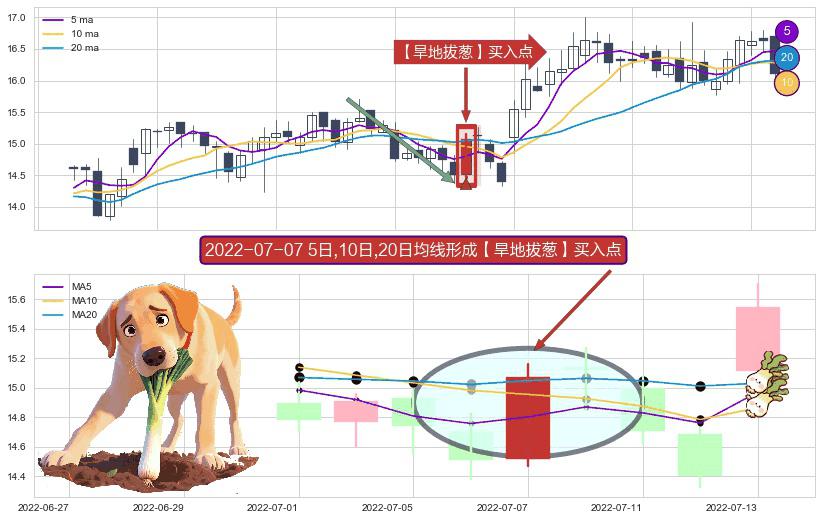 形态多维评估: ⚀ 2022-07-07日显现 5日-10日-20日均线 【旱地拔葱】买入点 看多信号,后市看涨,买入