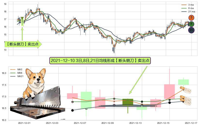 形态多维评估: ⚀ 2021-12-10日显现 3日-8日-21日均线 【断头铡刀】卖出点 看空信号,后市看跌,卖出