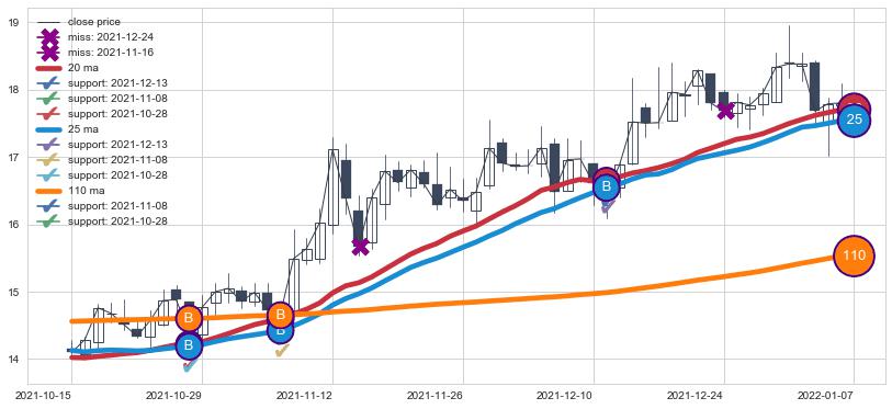 上涨趋势2021-10-15-2022-01-07,均线25, 20, 110确认关键支撑3处