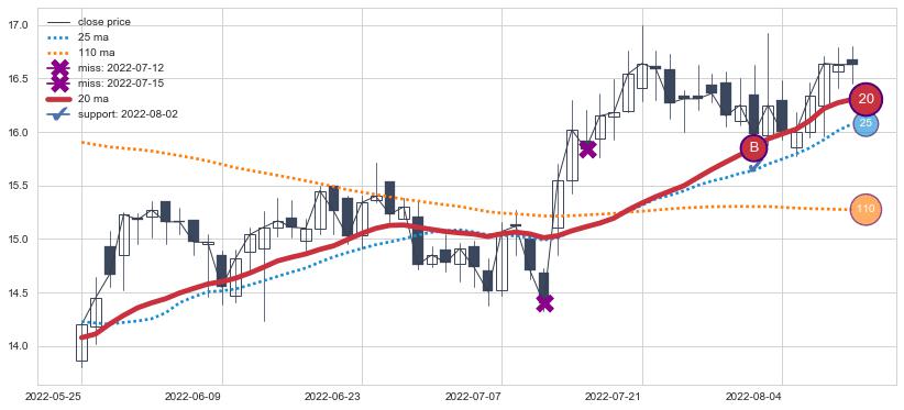 上涨趋势2022-05-25-2022-08-11,均线20确认关键支撑1处