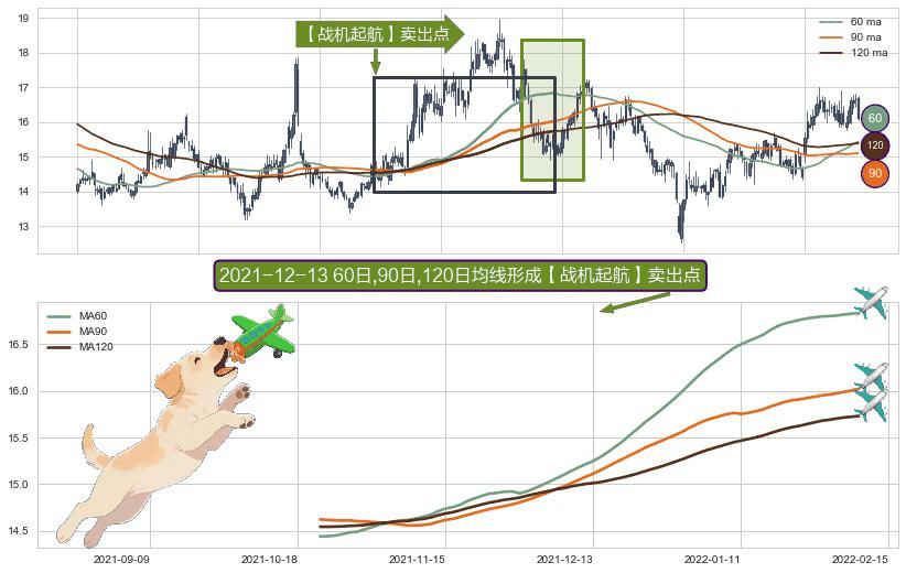 形态多维评估: ⚀ 2021-10-21日-2022-02-09日显现 60日-90日-120日均线 【战机起航】卖出点 看空信号,后市看跌,卖出