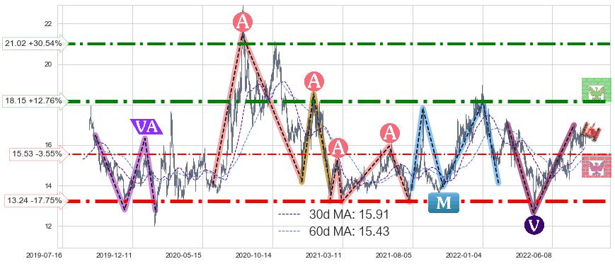 ♘ 支撑价格位15.53,可信任强度45.55%,距离最后交易2022-08-12形成的收盘价格16.10相差 -3.55%