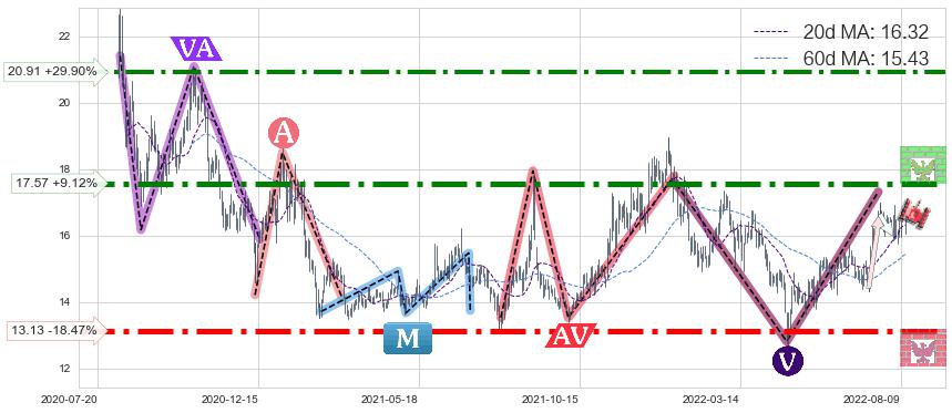 ♘ 阻力价格位17.57,可信任强度93.73%,距离最后交易2022-08-12形成的收盘价格16.10相差 +9.12%