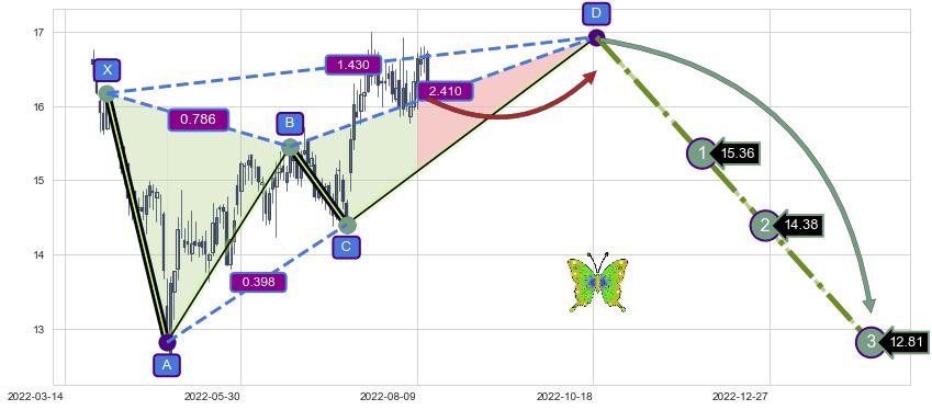 ➣ 未完成【蝴蝶】形态起点X: 2022-03-30, 已到达C点: 2022-07-12, 预测最终D点: 2022-10-19, 共137交易日