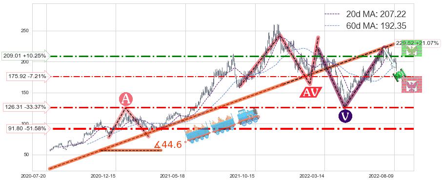 ♘ 阻力价格位209.01,可信任强度58.54%,距离最后交易2022-08-12形成的收盘价格189.58相差 +10.25%