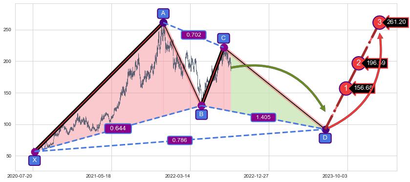 ➣ 未完成【伽利】形态起点X: 2020-07-27, 已到达C点: 2022-07-19, 预测最终D点: 2023-07-14, 共739交易日