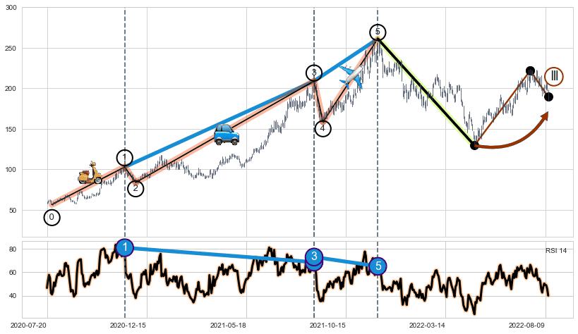 ➣ 第一, 三, 五浪上涨动能逐渐【增强变大】,趋势不断加固