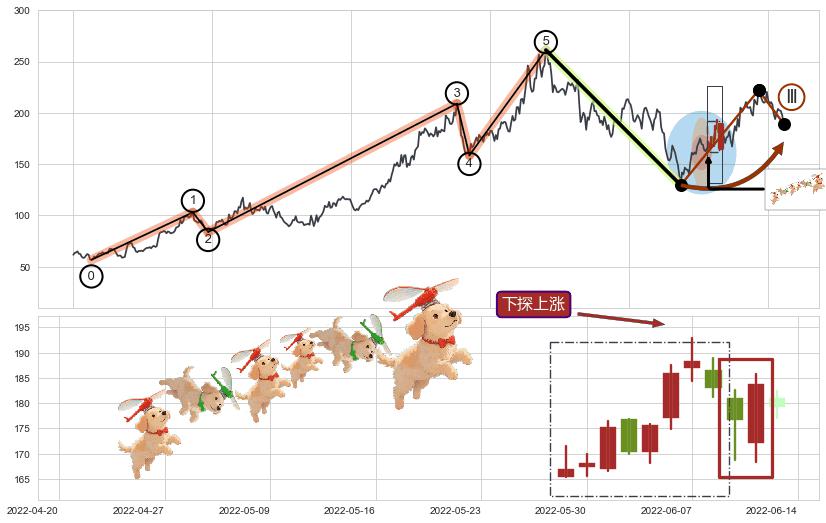 ➢ AI预测: 假定反转启动后, 第❷目标位置(2023-11-10, 196.59)