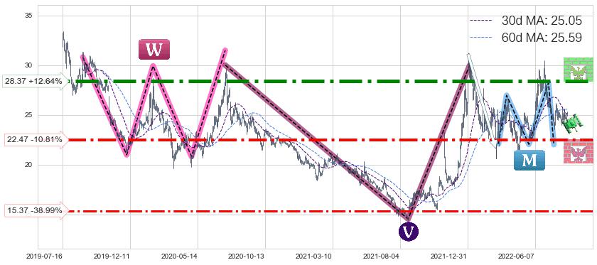 ♘ 支撑价格位22.47,可信任强度79.70%,距离最后交易2022-08-12形成的收盘价格25.19相差 -10.81%