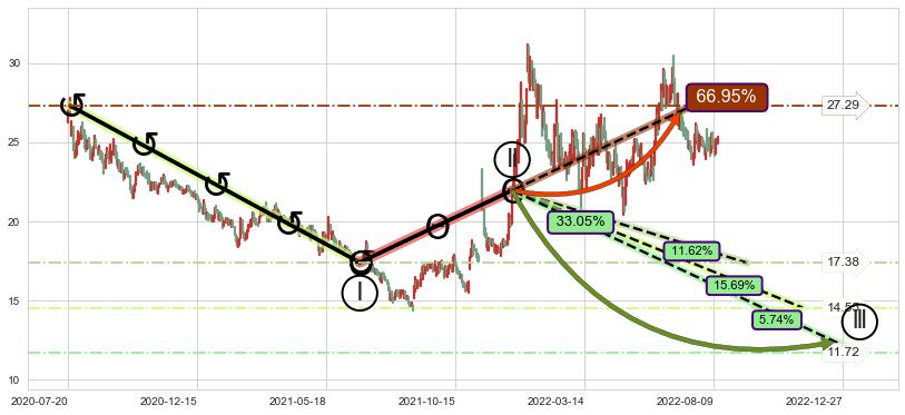 ♘ 支撑价格位21.89,可信任强度89.05%,距离最后交易2022-08-12形成的收盘价格25.19相差 -13.09%