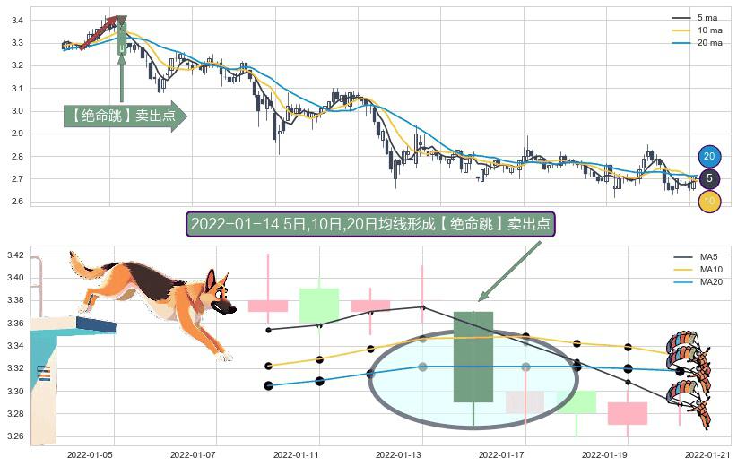 ⚀ 2022-01-14日显现 5日-10日-20日均线 【绝命跳】卖出点 看空信号,后市看跌,卖出