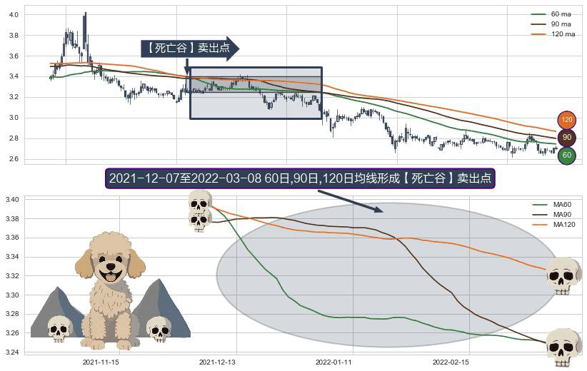 ⚀ 2021-12-08-日至2022-03-08-日显现 60日-90日-120日均线 【死亡谷】卖出点 看空信号,后市看跌,卖出