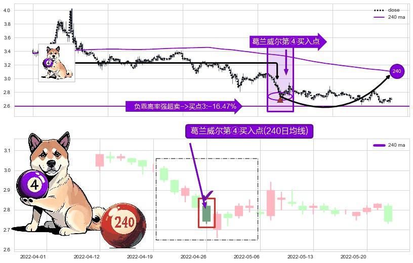 ⚀ 2022-04-26-日显现 葛兰威尔均线 240日均线 第④买入点 下降趋势均值回复的短线反弹信号,后市看涨,买进信号