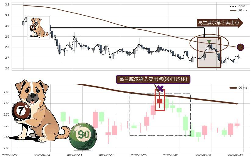 ⚀ 2022-07-27-日显现 葛兰威尔均线 90日均线 第⑦卖出点 下降趋势的中继信号,后市看跌,卖出信号