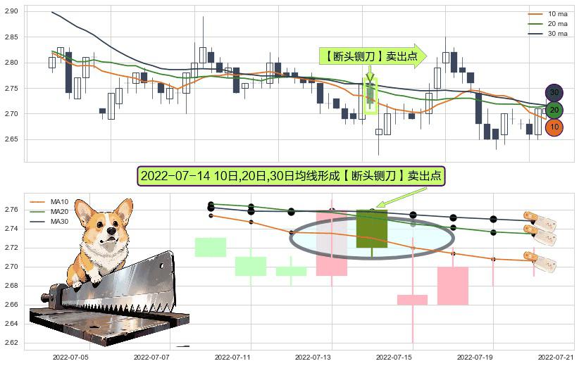 ⚀ 2022-07-14日显现 10日-20日-30日均线 【断头铡刀】卖出点 看空信号,后市看跌,卖出