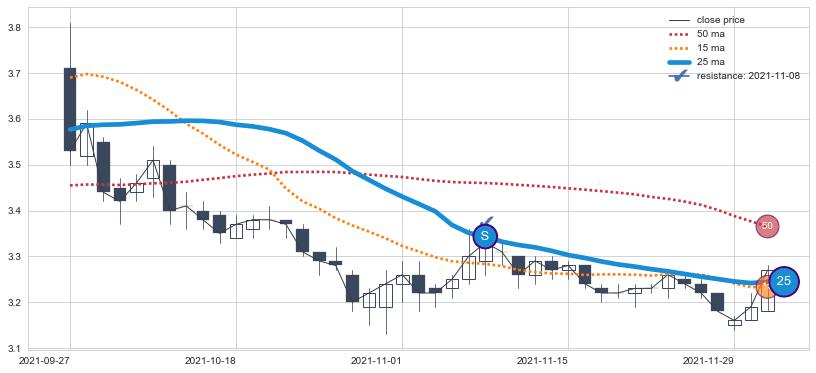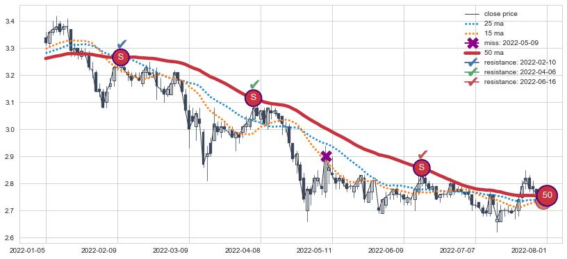 ⚂ 2022-01-07-日均线向上突破,2022-01-14-日重新下穿均线破位,均线阻力再次生效