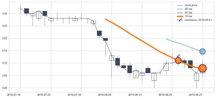 ⚁ MA60和MA90走势平行,且始终保持在短距离内,MA120始终在短中期均线上方,与短中期均线保持一定的距离,微微下行