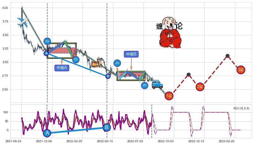 ➣ 【未完成】缠论 起点:2021-09-23, 完成第1中枢A,完成第2中枢B,到达2022-08-12
