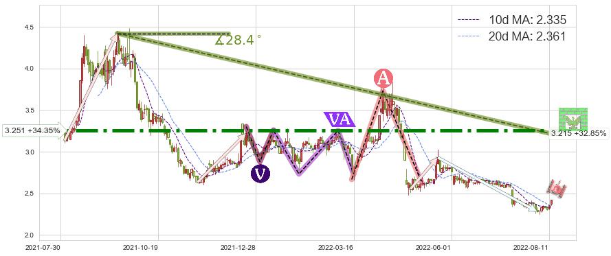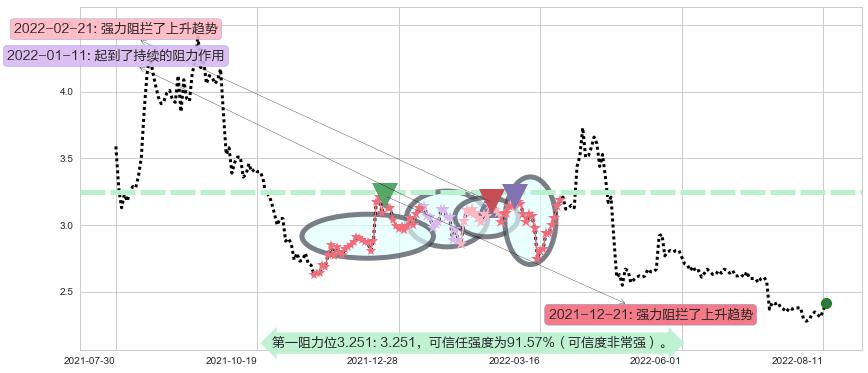 ♘ 阻力价格位3.251,可信任强度91.57%,距离最后交易2022-08-12形成的收盘价格2.420相差 +34.35%