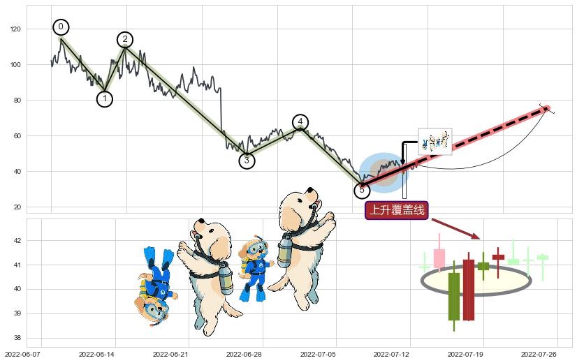 | 6 🅚:【蛟龙出海】买入点 ➕ 🌊:波浪理论猜想下跌浪5已形成,猜想后续形成abc反弹上涨(均值回复) ☞ 看多信号 ⇥ 【均线】交织【图形】⇥ 综合量化分数: 57 | > |