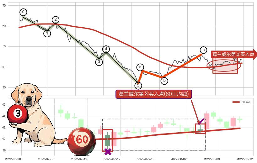 ➣ D点拟合预测价格49.87,距离最后交易收盘价格43.32相差 +15.13%