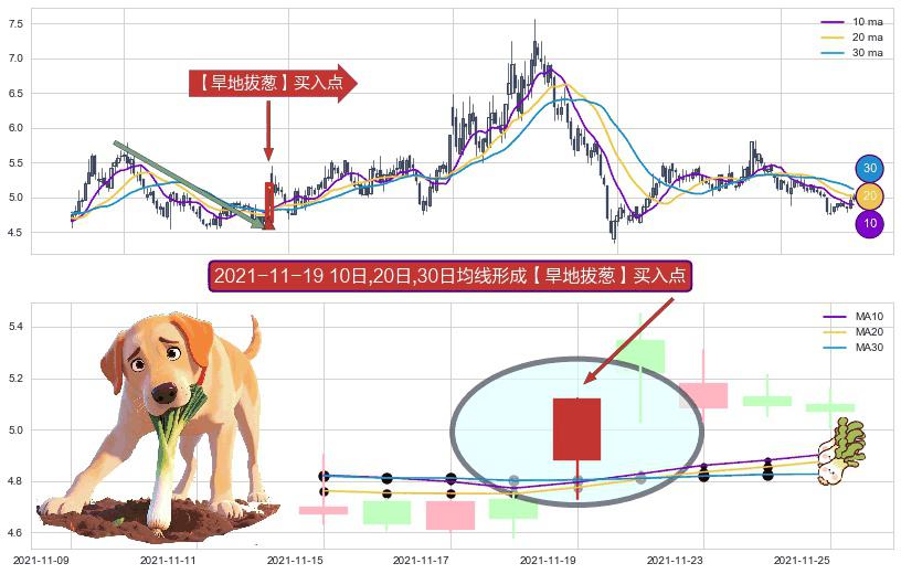 ⚀ 2021-11-19日显现 10日-20日-30日均线 【旱地拔葱】买入点 看多信号,后市看涨,买入