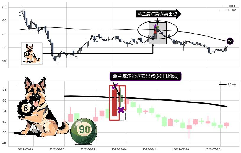⚀ 2022-07-01-日显现 葛兰威尔均线 90日均线 第⑧卖出点 下降趋势的中继信号,后市看跌,卖出信号