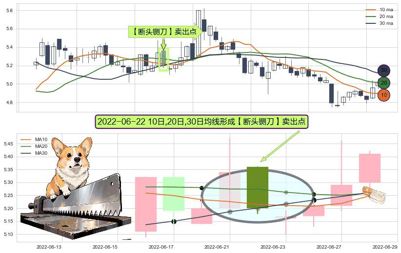 ⚀ 2022-06-22日显现 10日-20日-30日均线 【断头铡刀】卖出点 看空信号,后市看跌,卖出