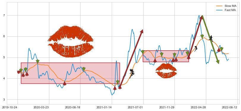 2021-06-30至2022-02-08 慢线与快线多次接触,存在上下穿越,有缠绕
