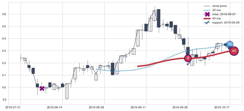 ➢ 最优均线组合共正确确认支撑阻力信号7处,正确确认率 70.00%