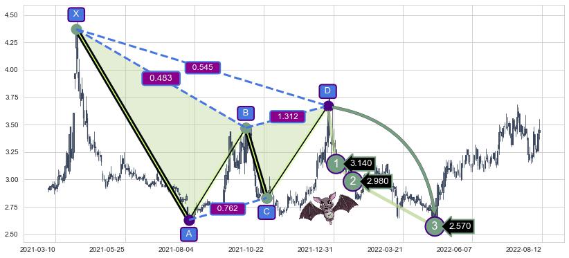 ➣ 已完成【蝙蝠】形态起点X: 2021-03-31, 终点D: 2021-12-27, 共182交易日