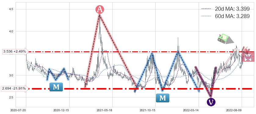 ♘ 支撑价格位3.536,可信任强度55.83%,距离最后交易2022-08-12形成的收盘价格3.450相差 +2.49%