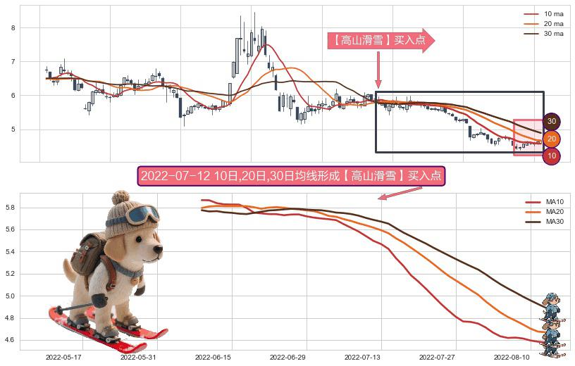 ⚀ 2022-06-09日-2022-08-12日显现 10日-20日-30日均线 【高山滑雪】买入点 看多信号,后市看涨,买入