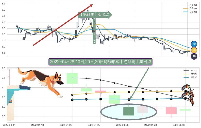 ⚀ 2022-04-26日显现 10日-20日-30日均线 【绝命跳】卖出点 看空信号,后市看跌,卖出