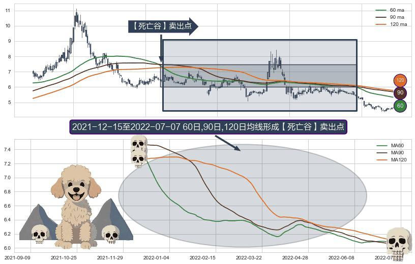 ⚀ 2021-12-16-日至2022-07-07-日显现 60日-90日-120日均线 【死亡谷】卖出点 看空信号,后市看跌,卖出