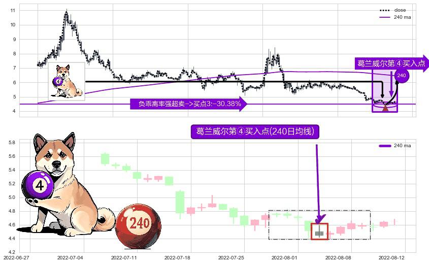 ⚀ 2022-08-03-日显现 葛兰威尔均线 240日均线 第④买入点 下降趋势均值回复的短线反弹信号,后市看涨,买进信号