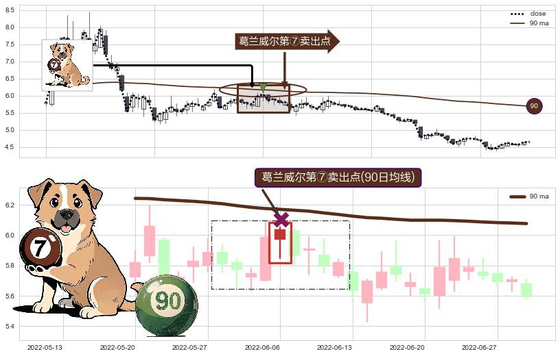 ⚀ 2022-06-06-日显现 葛兰威尔均线 90日均线 第⑦卖出点 下降趋势的中继信号,后市看跌,卖出信号