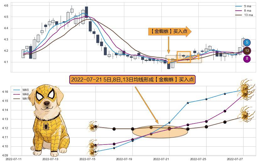 ⚀ 2022-07-21日显现 5日-8日-13日均线 【金蜘蛛】买入点 看多信号,后市看涨,买入
