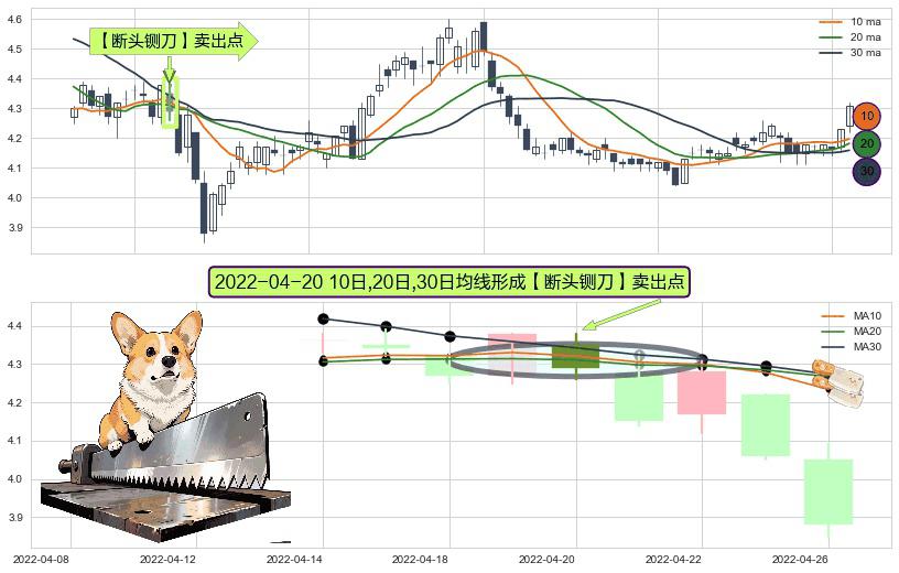 ⚀ 2022-04-20日显现 10日-20日-30日均线 【断头铡刀】卖出点 看空信号,后市看跌,卖出