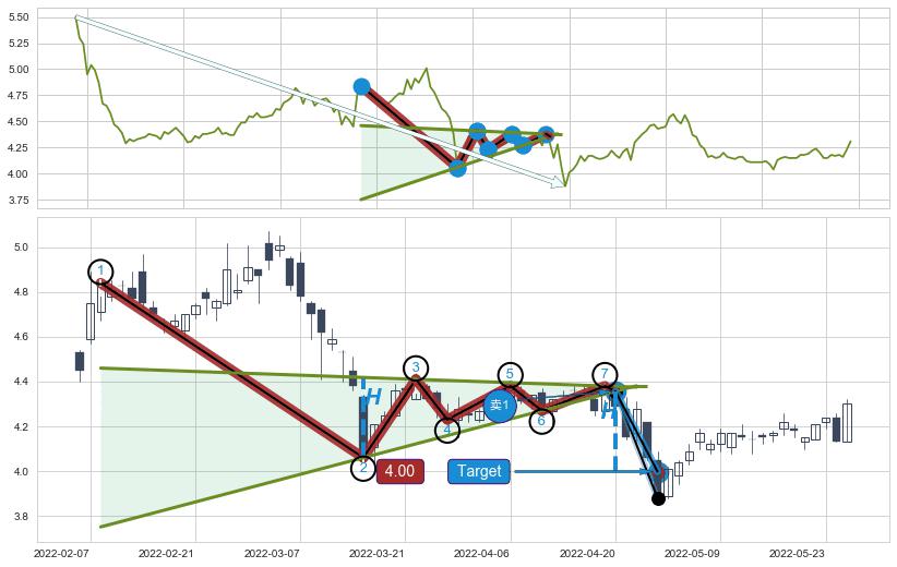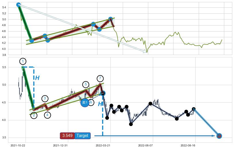 ➣ AI预测: 假定反转启动后, 第❸目标位置(2023-02-01, 3.880)