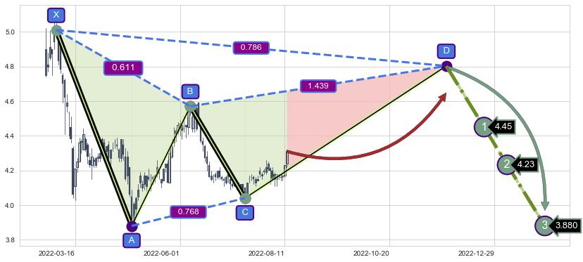 ➣ 未完成【伽利】形态起点X: 2022-03-03, 已到达C点: 2022-07-15, 预测最终D点: 2022-11-28, 共187交易日