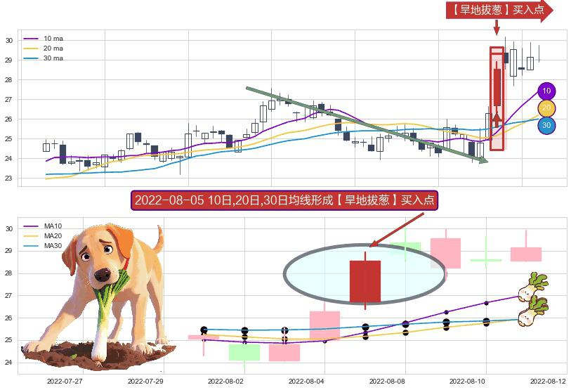 ⚀ 2022-08-05日显现 10日-20日-30日均线 【旱地拔葱】买入点 看多信号,后市看涨,买入