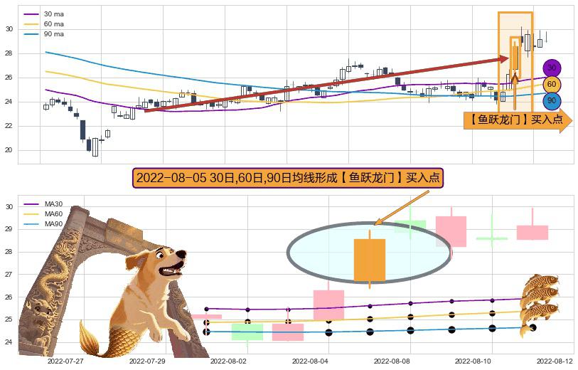 ⚀ 2022-08-05日显现 30日-60日-90日均线 【鱼跃龙门】买入点 看多信号,后市看涨,买入