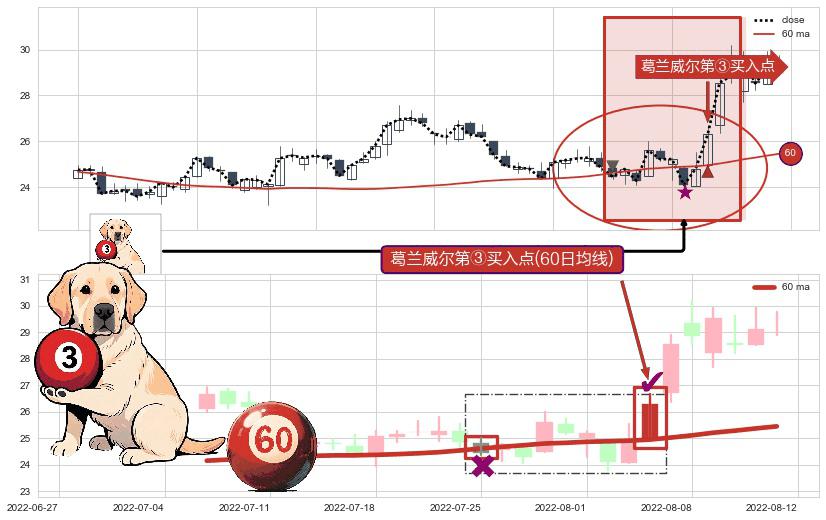 ⚀ 2022-08-04-日显现 葛兰威尔均线 60日均线 第③买入点 上升趋势的中继信号,后市看涨,买进信号