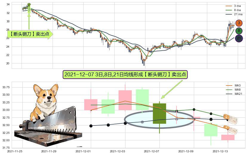 ⚀ 2021-12-07日显现 3日-8日-21日均线 【断头铡刀】卖出点 看空信号,后市看跌,卖出