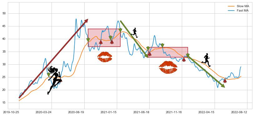 2021-12-10至2022-06-06 慢线与快线呈空头排列, 慢线与快线接触少,无缠绕