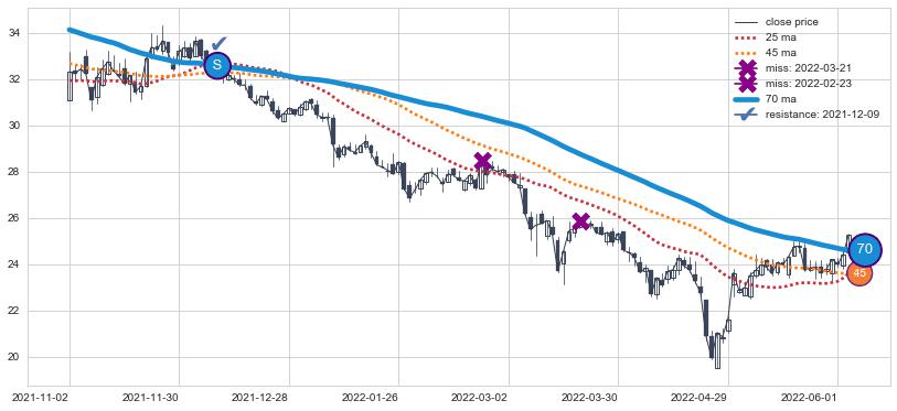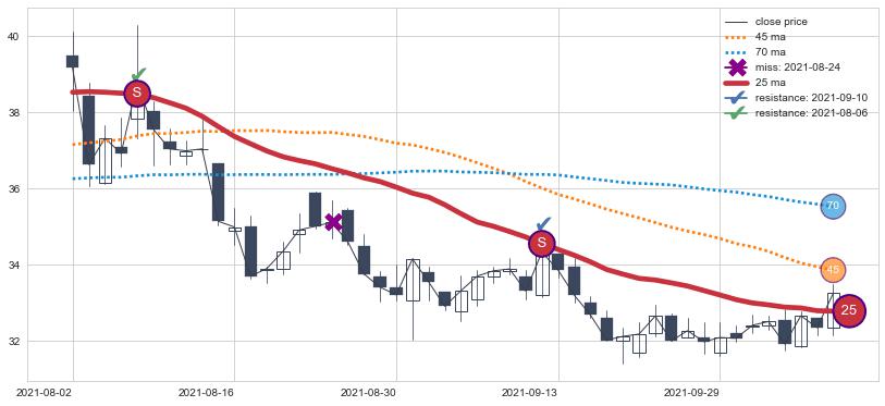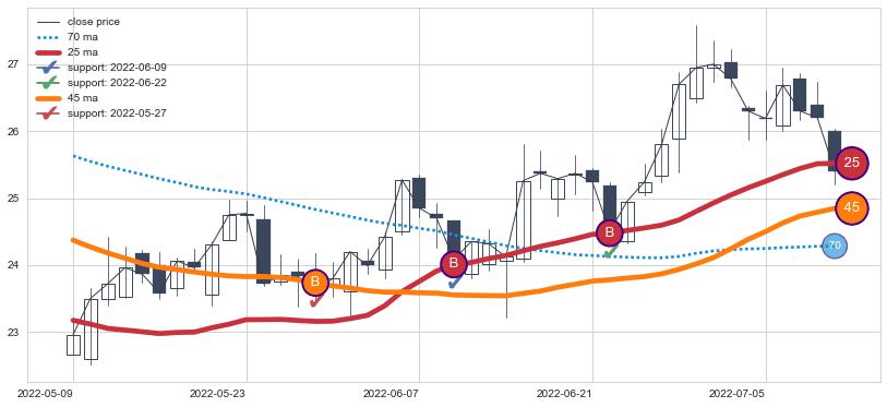 ⚂ 2022-07-25-日均线向下破位,2022-08-04-日重新上穿突破均线,均线支撑再次生效
