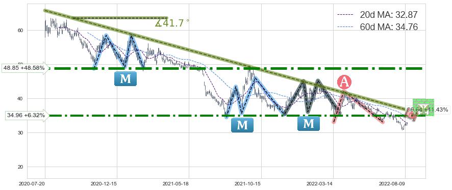 ♘ 阻力价格位34.96,可信任强度76.48%,距离最后交易2022-08-12形成的收盘价格32.88相差 +6.32%