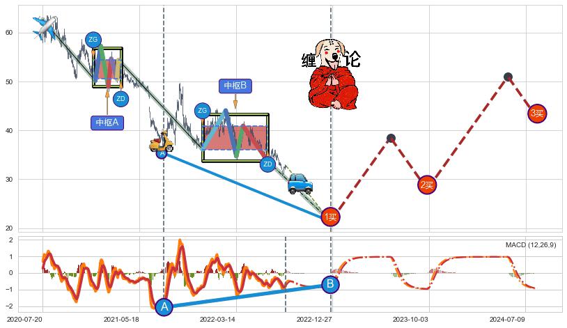 ➣ 【未完成】缠论 起点:2020-07-20, 完成第1中枢A,完成第2中枢B,到达2022-08-12