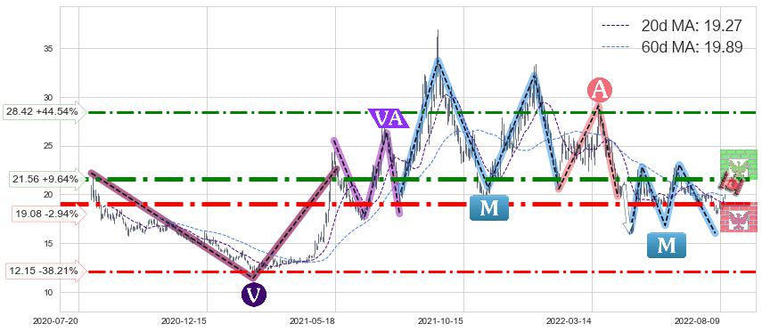 ♘ 支撑价格位19.08,可信任强度89.34%,距离最后交易2022-08-12形成的收盘价格19.66相差 -2.94%